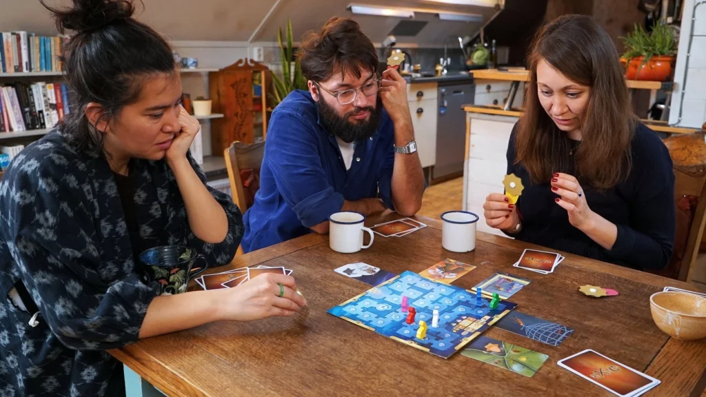 Která z nich patří vypravěči? Hráči tajně hlasují a pak začíná bodování. Získané body se zaznamenají na hrací desce.